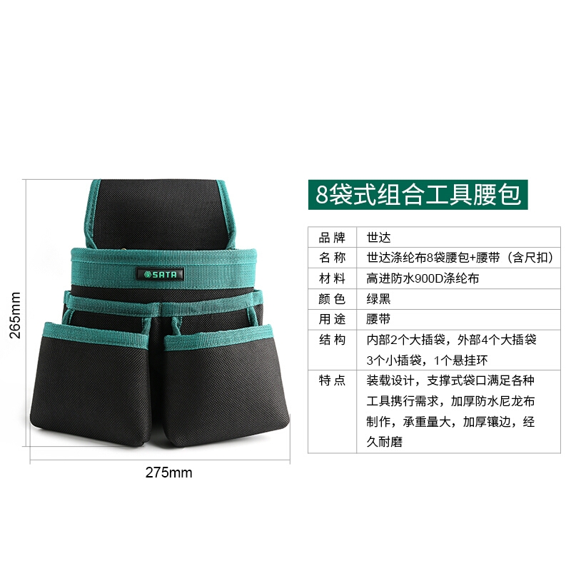 世达工具(SATA)多功能维修工具包 腰包 防水五金工具袋 8袋式 95213(含腰带)